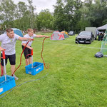 An verschiedenen Stationen konnten die Kinder und Jugendlichen dann am Samstag ihr Können unter Beweis stellen. Die Gruppe wurde in U12 und Ü12 eingeteilt. Die Kleinen fuhren zunächst auf den Schießstand, wo sie Lichtpistole und Lichtgewehr schossen. Dorthin wurden sie auf dem Anhänger eines Traktors transportiert. Nach dem Mittagessen ging es auf dem Sportplatz weiter. Hier gab es zum Beispiel Bogen schießen und Dosenwerfen mittels Wasserstrahl. Während die Großen noch auf dem Schießstand schwitzten, gab es nach dem Durchlaufen aller Stationen für die Kleinen noch eine Überraschung - die Wasserspiel. Mit großen Wasserschläuchen konnten sie sich auf dem Sportplatz abkühlen.